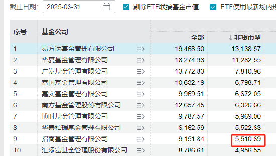 Wind数据显示,徐勇担任总经理之初,即2022年6月,招商基金非货规模5571亿元,行业排名第5位。到2025年3月,招商基金最新非货规模5511亿元,排名第9位。即徐勇任职期近3年,公司规模不增反降,缩水360亿元,排名下降4位。
