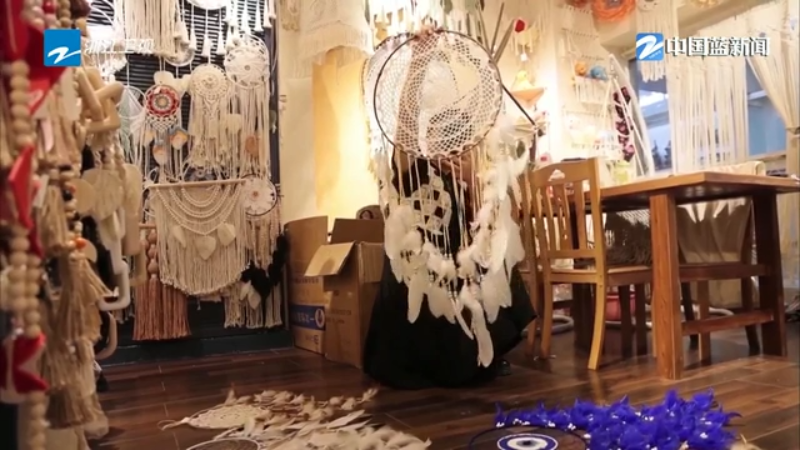 同样忙活的,还有义乌商贸城的商户。专做捕梦网生意的胡春霞这几天忙着挑选了十多款新设计产品,让美国客商线上选购。